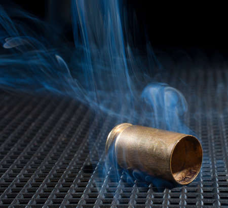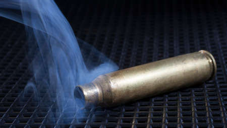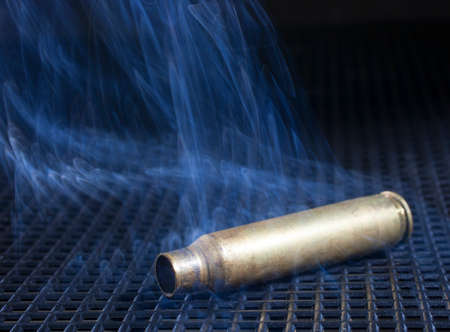 Empty rifle ammunition with smoke on a metal grate