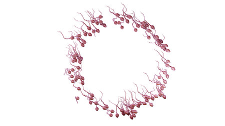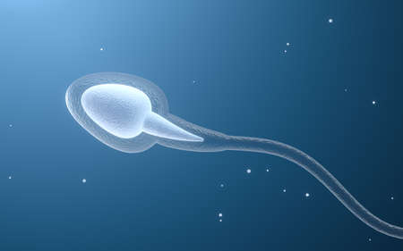 Human sperm cells, 3d rendering. Computer digital drawing.