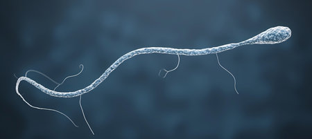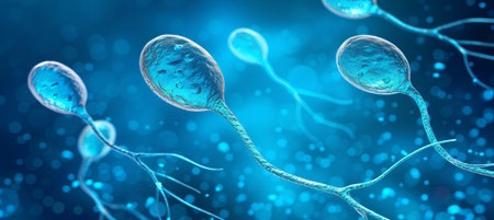 High resolution microscopic image of male sperm cells observed under a laboratory microscope