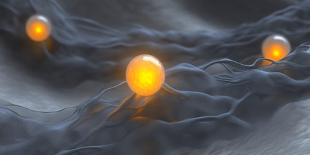 Explore an abstract digital art piece showcasing blue bacteria-like spheres symbolizing growth and evolution, set against a dark gradient background for a striking visual effect.