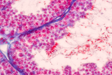 Anatomy and Histological Epididymis and Testis human cells under microscope.
