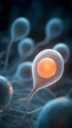 Microscopic view showcasing the moment of fertilization as male sperm interacts with a female egg