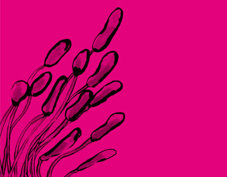 3d illustration of sperm and egg cell in colour background, sperm cells in motion