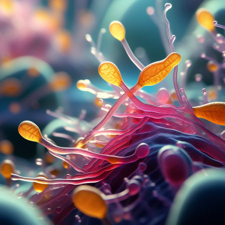 Fantastic abstract alien organic tissue. microbiology research. Generative AI. Illustration for banner, poster, cover, brochure or presentation.
