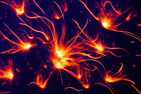 This image showcases several abstract cell-like structures against a dark background. The glowing forms display a vibrant orange and red hue, with internal structures visible. The composition suggests a microscopic or scientific context, potentially suitable for educational or conceptual projects. The image's style offers visual appeal for diverse commercial applications.