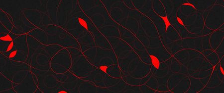 This abstract image showcases sperm cells in a vibrant, colorful background. The design symbolizes reproduction, life, and biological processes in a striking artistic style.