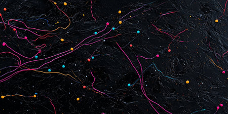 This abstract image showcases sperm cells in a vibrant, colorful background. The design symbolizes reproduction, life, and biological processes in a striking artistic style.