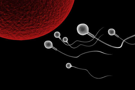 Swimming sperm race to impregnate a fertile human egg illustration