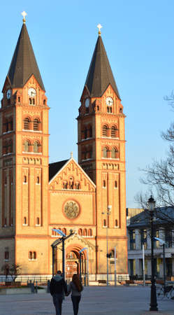 Four towers of Christian cathedral in Pecs, Hungary
