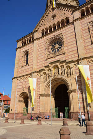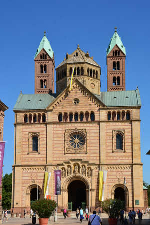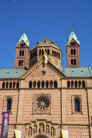 Speyer, Germany. The facade of the Cathedral officially named the Imperial Cathedral Basilica of the Assumption and St Stephen
