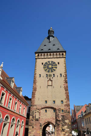 Speyer, Germany, September 16, 2020: View of Old gate at the end of Maximilianstrasse in Speyer, Germany