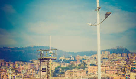 Vintage looking View of the city of Genoa from the sea