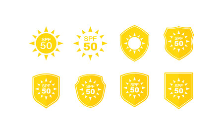 Sun protection labels set. SPF 50. Vector on isolated white background. EPS 10.