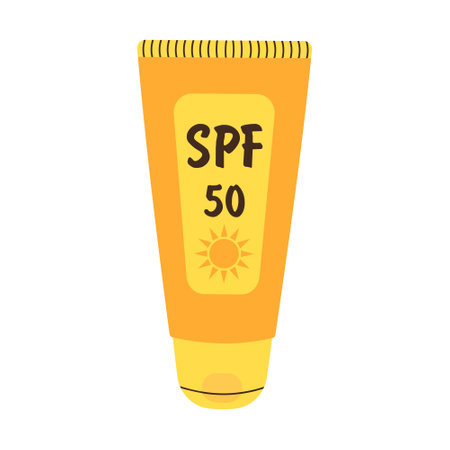 Sunscreen cream in tube. SPF 50. Cartoon flat illustration isolated on white background.