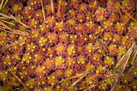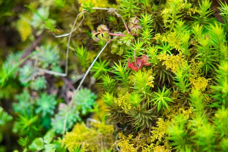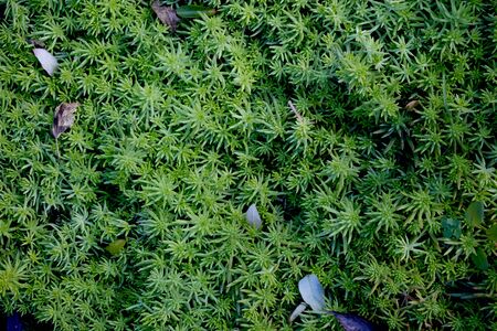 Background of dense vegetation close up, macro photography of moss