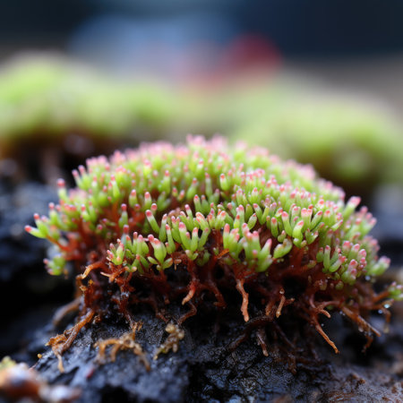 Macro view of multi-colored moss, capturing the delicate patterns and vivid hues.