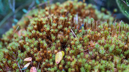 colorful moss in the forest, closeup of photo with shallow depth of field