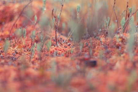 Dreamy swamp autumn red grass background