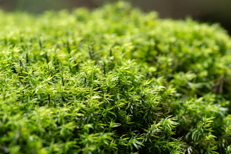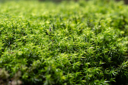 Green moss texture or background macro, selective focus, shallow DOF