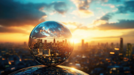 A captivating image showcasing a cityscape reflected within a crystal ball, offering a unique and artistic perspective.