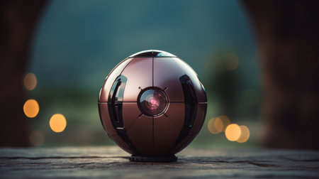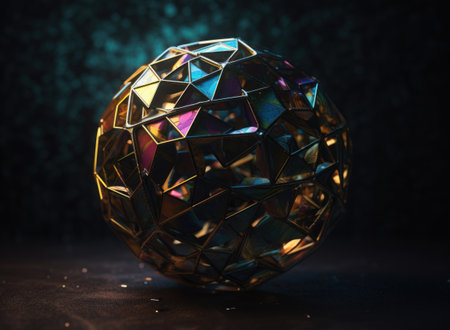 A detailed close up image of a beautifully designed sphere featuring an intricate geometric pattern meticulously crafted on its surface