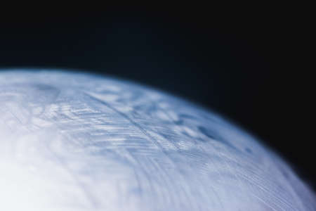 Soap Bubble Ball on black background. Abstract semicircle colorful background. Model of Space or planets universe cosmic. Real macro photo.