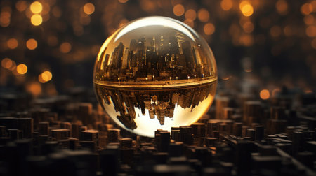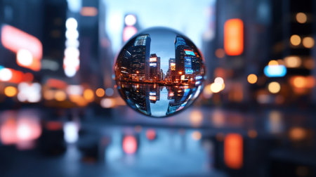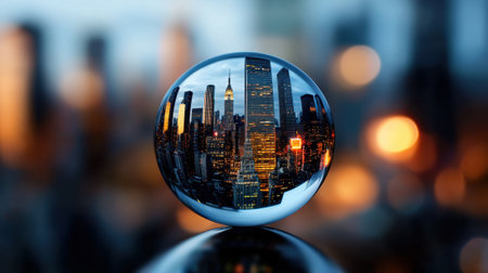 A captivating image showcasing a cityscape reflected within a crystal ball, offering a unique and artistic perspective.