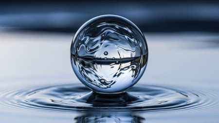 Water drop close-up with ripples and waves on water surface