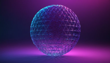 Abstract 3d rendering of sphere with polygonal mesh. Futuristic background.