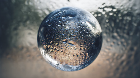 Water drops in the form of a crystal ball. Abstract background.