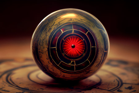 A detailed close up image of a beautifully designed sphere featuring an intricate geometric pattern meticulously crafted on its surface