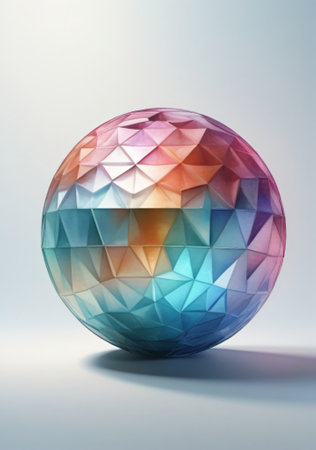 Abstract 3d rendering of sphere with polygonal mesh. Futuristic background.