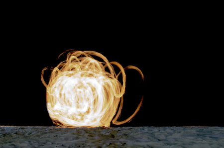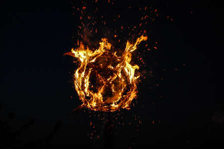 abstract ball fire flames meteor on black background