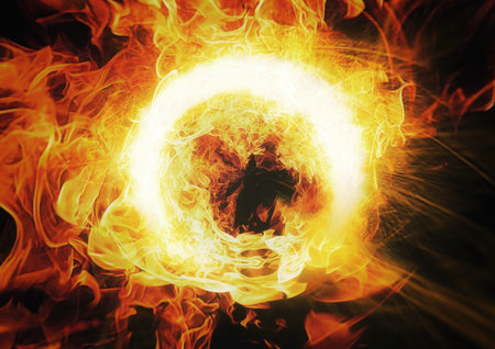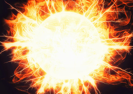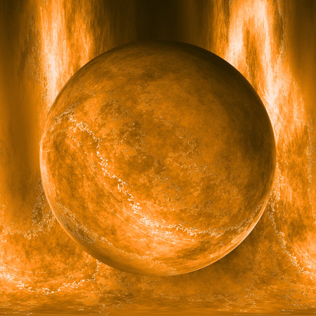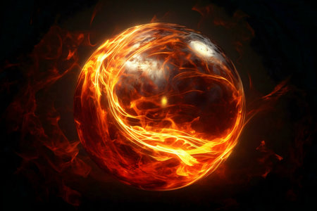 Blazing Sphere: A dramatic depiction of a celestial orb engulfed in fiery energy and intense heat.