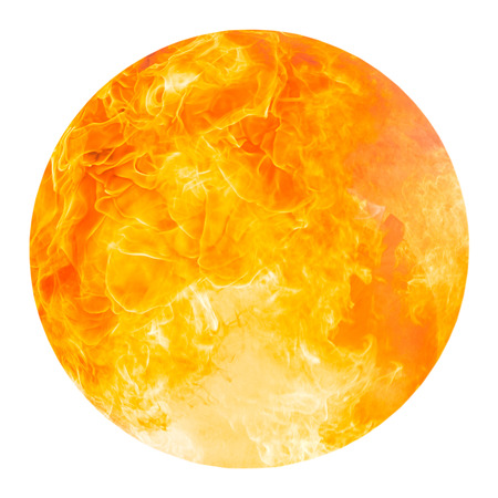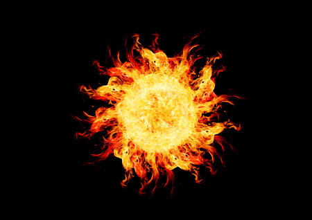 Image of ball fire flame look like sun on black background