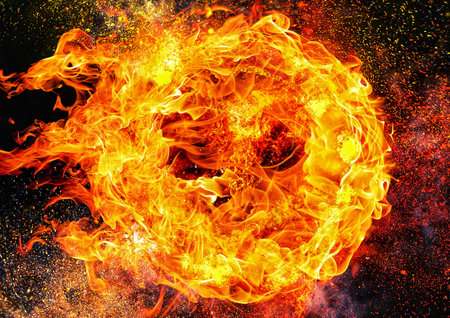 3d illustration of fireball exploding and burning with energy concept