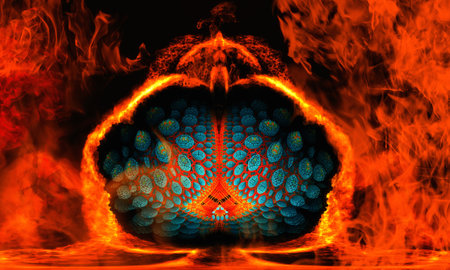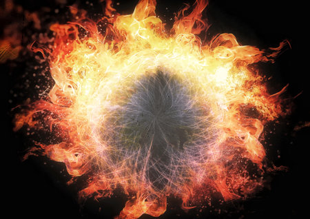 Abstract digital art depicting a fiery sphere