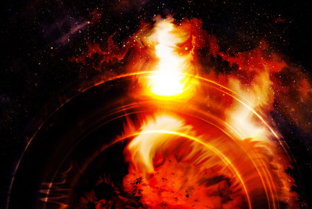 Fiery Flames on Red and Yellow Planet Isolated on a Black Copy Space Background.