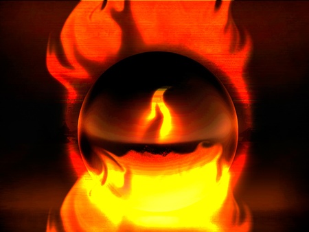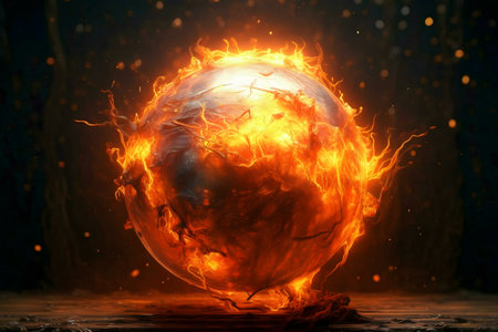 A fiery sphere engulfed in intense flames. Digital art depicting a burning globe.