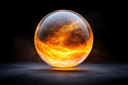 A mesmerizing cosmic sphere radiates fiery orange hues, filled with starry elements. Perfect for illustrating themes of space, energy, and creativity.