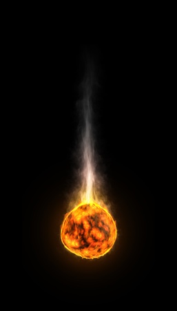 A hot, melting stone on fire with a long smoke trail