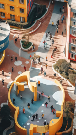 Generative AI : Aerial Top Down view of School Playground Barcelona Catalunya Spain