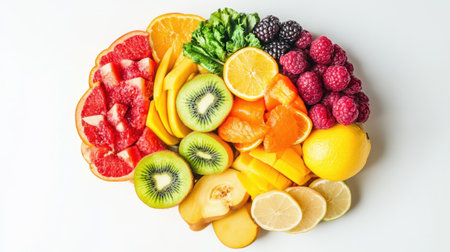 Conceptual image of brain shape made entirely of nutritious fruits, overhead flat lay
