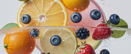 AI Generated. Citrus fruits and berries lying in a bubbly liquid