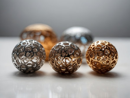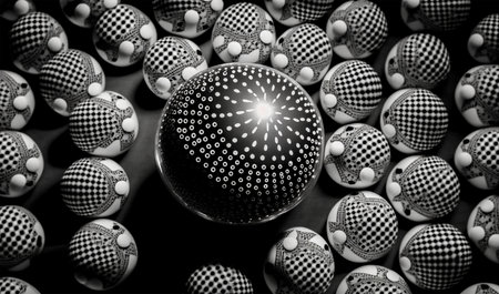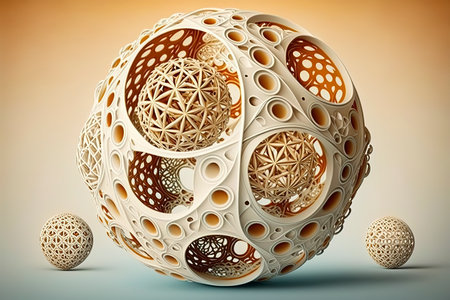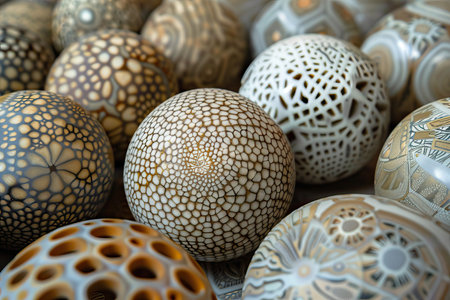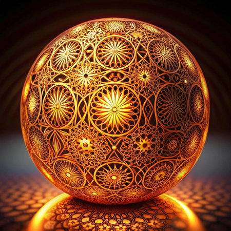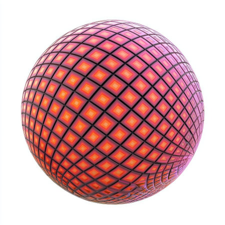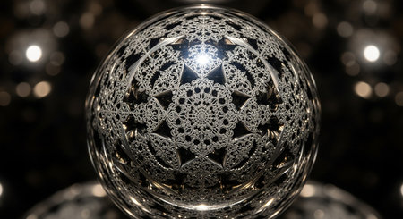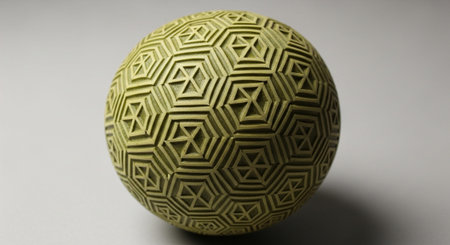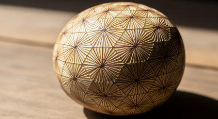 A detailed close up image of a beautifully designed sphere featuring an intricate geometric pattern meticulously crafted on its surface