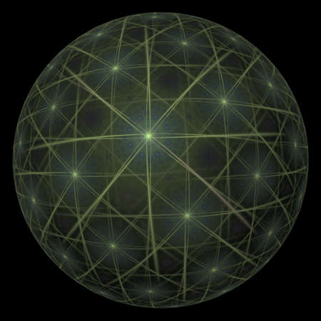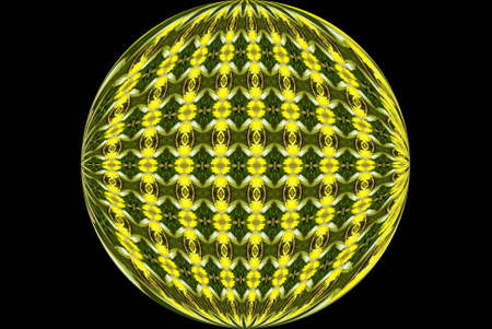 yellow and green globe shaped abstract on black background
