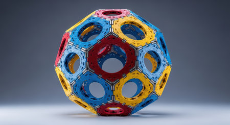 Colorful magnetic building toy sphere constructed with geometric pieces