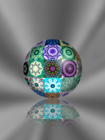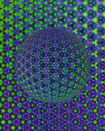 This captivating abstract sphere showcases intricate patterns and vibrant colors, perfect for digital design projects, backgrounds, and creative inspiration.