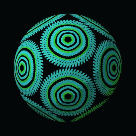 Artfully designed and colorful ball, 3D illustration on black background
