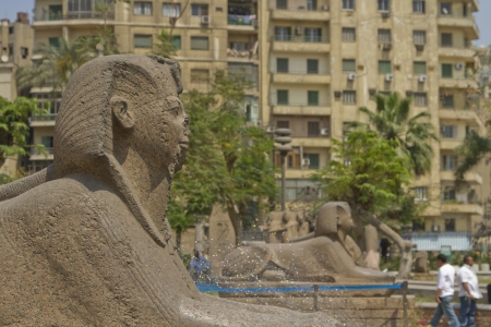 Pink Granit Sphinx outsie Cairo Museum The garden in the ground of Cairo Museum